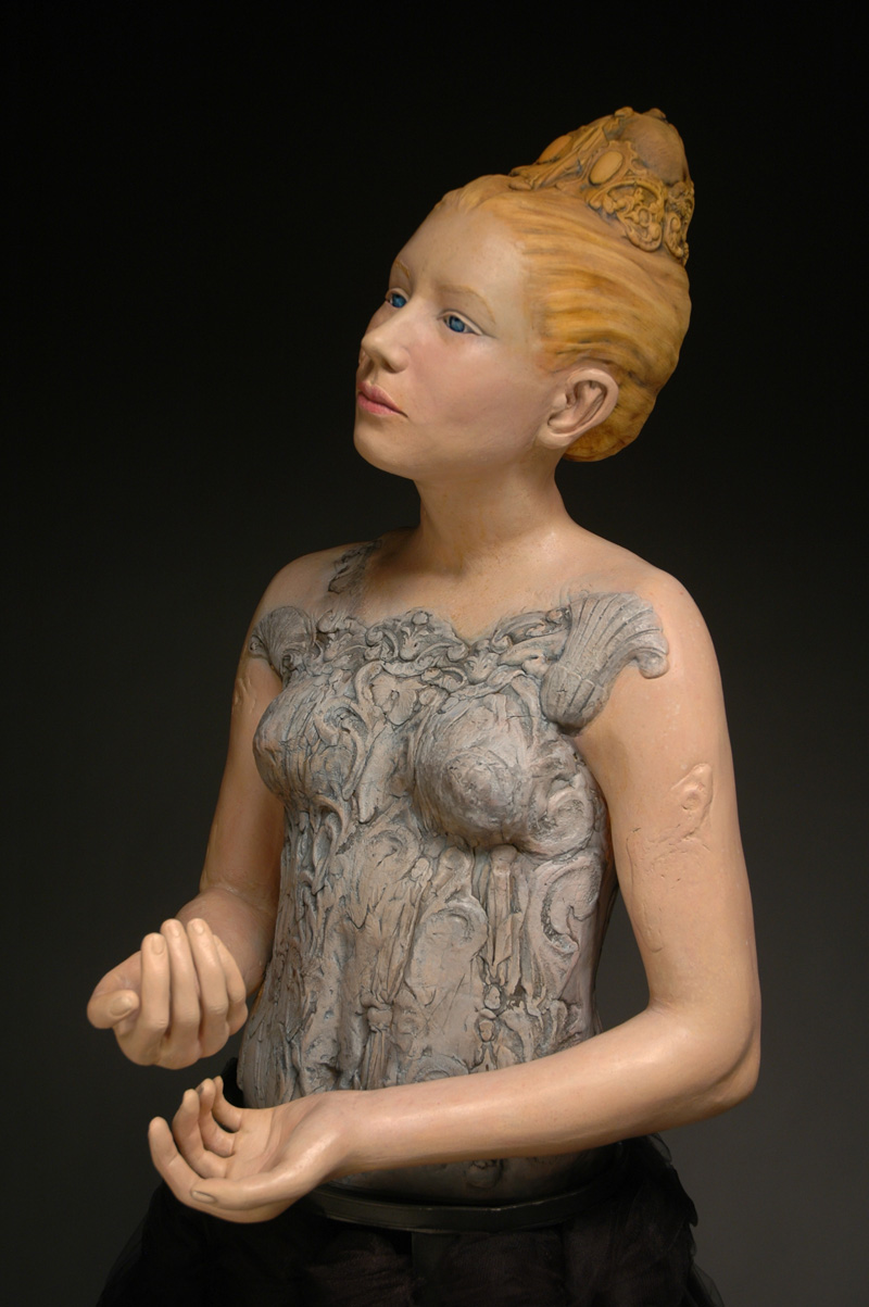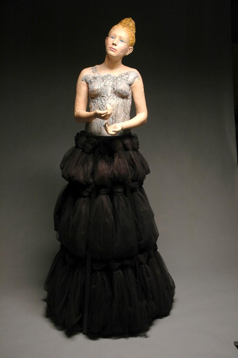 Porcelain figure on welded steel based covered in tulle